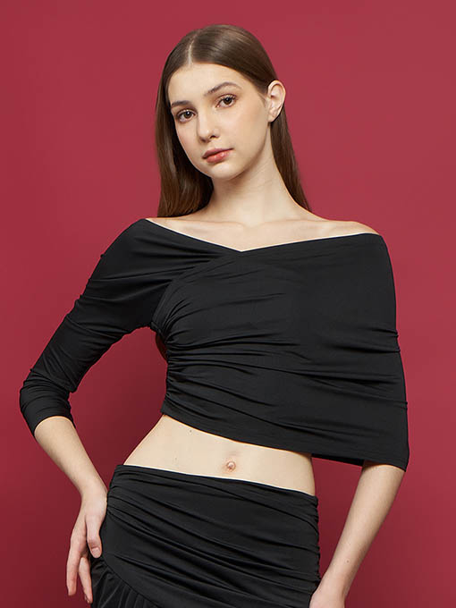 Asymmetric design, pleated texture, stretchy top